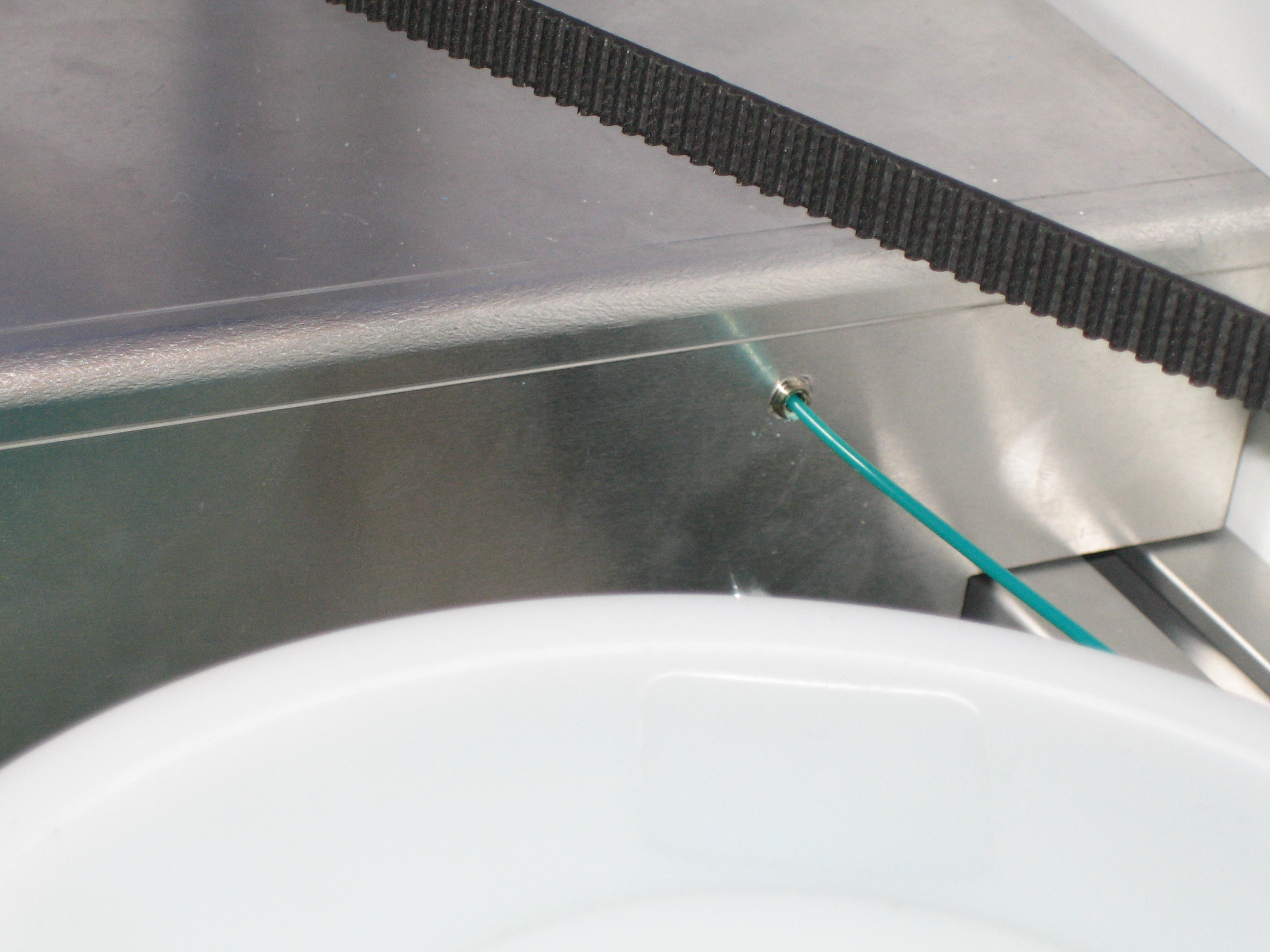 A nice surprise: a steel nozzle on the filament feed tube to prevent the tube from disappearing somewhere in the internals of the machine.