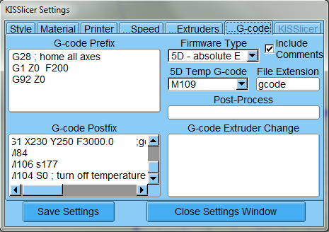 KISSlicer settings (6): G-code